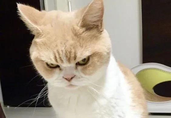 猫咪表现出强硬的状态时,脸不比平常的状态更有力量,瞳孔变得细长。目光尖锐,耳朵稍微向后拉伸,胡须向前。